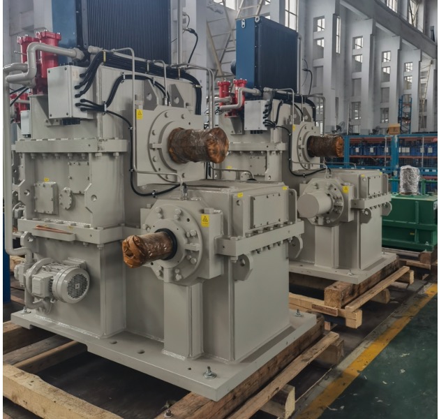 CQYLK550: CQYLK550: used in locomotive test bench, with a power of 2000kw, a speed of 2000rpm. The gearbox adopts a shift and bevel gear synchronous integrated structure, with a vertical transmission structure, greatly reducing the overall layout space size for customers. At the same time, it reduces the overall cost of the test bench for customers. Traditional locomotive test benches are arranged with a gear shifting box and a synchronous box. The development of this type of product gives similar products a strong competitive advantage in the subsequent market.